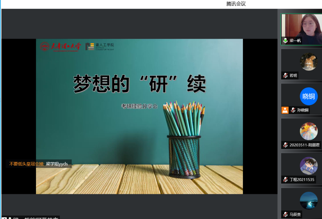 为巩固深化公司学风建设成果,进一步激发员工的学习热情,帮助学子做好学业规划,深入了解考研信息,明确考研目标,掌握考研技巧,5月6日晚,英国上市公司365举办第三场线上青春梦想领航人之“职”面未来经验分享会,邀请公司分管研究生工作的副经理李强老师、2020级艺术(研)专业梁一帆、2021级电子信息(研)专业蔡佳良为主讲人,校内外300余名师生参加。