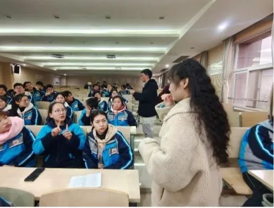 互动环节,学弟学妹们更加踊跃,纷纷拿出早已准备好的小纸条或在线上会议室中写出他们关心的问题,宣讲团成员一一解答,赢得阵阵掌声。通过互动,解除了他们的疑问,增强了自信,使他们懂得,如今挥洒的每一滴汗水都是在浇灌自己的未来。
