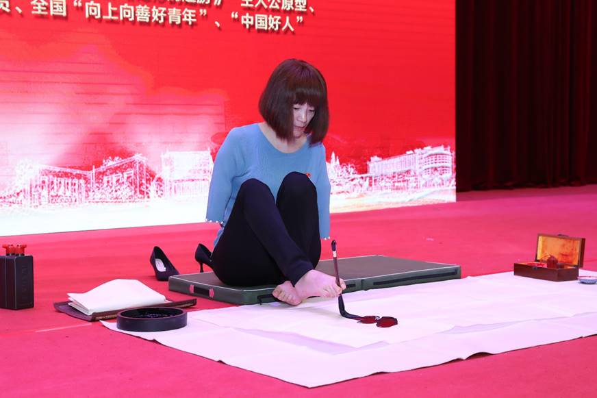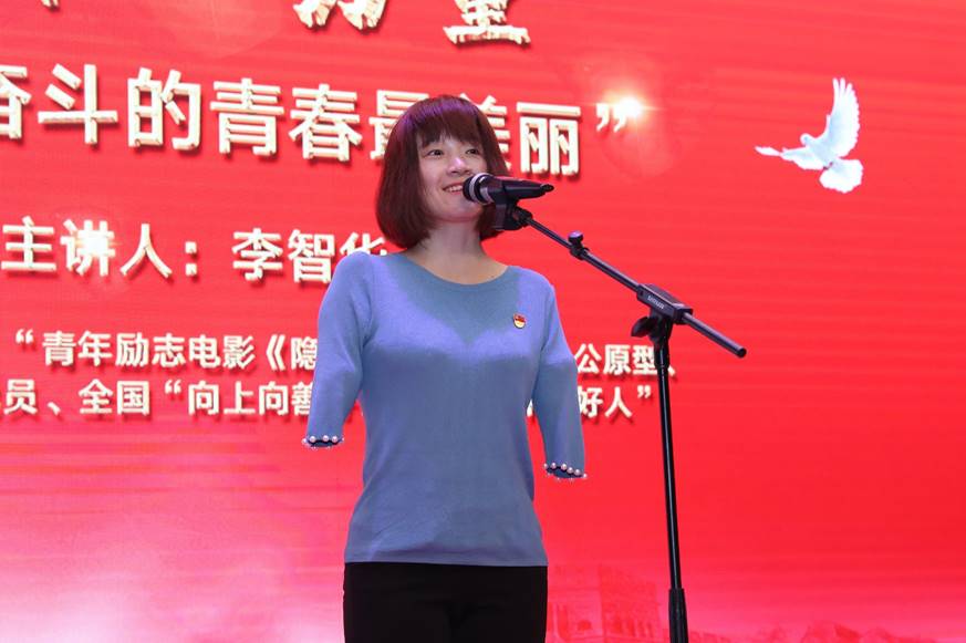 李智华从小因一场意外大火失去双臂,她用“双脚”同命运展开了顽强地抗争,克服了常人难以想象的困难,学会了用脚吃饭、写字、探亲、书法绘画、操作电脑等,她用“双脚”扣开了高等学府的大门。李智华从“活着”、“接受”、“不嫌弃”、“家庭”、“爱的缔造者”、“价值”6个维度,与在场听众分享个人经历、诠释生活的意义、阐述生命价值,激励大家找到人生方向,珍惜生命、热爱生活、奋发图强。她面对生活困苦永不言弃、永不放弃的自强精神,感动了在场师生。