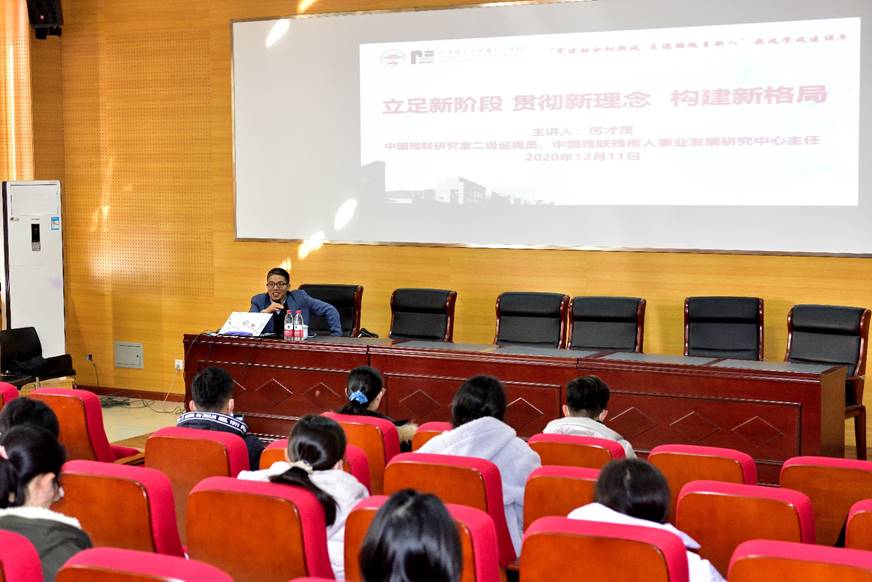 近日,中国残疾人联合会研究室二级巡视员、中国残联残疾人事业发展研究中心主任厉才茂来公司调研,为公司师生作题为《立足新阶段 贯彻新理念 构建新格局》的专题报告,公司全体教师、研究生代表共50余人参加。