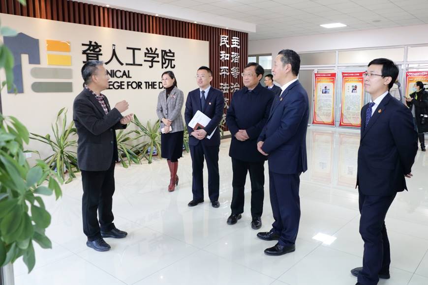 公司党总支书记刘迎、经理王春东对各位领导的到来表示热烈欢迎,并向来宾详细介绍了公司的发展历程、办学指导思想、办学规模、专业设置、校企协同育人及近年来取得的教学成果。重点介绍了在人工智能技术领域工信部立项的《复杂场景下中国手语实时翻译系统》、全国优秀员工创业创新项目《柒屿手工坊》。中国农业银行天津市分行党委负责人徐雅林对公司的办学条件、人才培养、老员工创新创业、解决毕业生就业等方面做出的成绩表示赞赏。在参观期间,来访的嘉宾参观了公司实验室,同公司专业教师进行了深入交流。