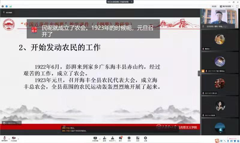 基础教学部的李强老师在讲授《中国近现代史纲要》时,针对部分听障员工历史基础薄弱、对有影响力的历史事件了解不清而容易造成认识错误的情况,通过实地画面展示、在线参观3D革命历史博物馆、纪念馆等方式,课上组织分组讨论,及时补充材料文献,丰富课堂内容和形式,引导员工树立正确历史观。
