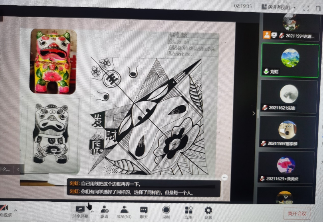服装系的刘虹老师的《二维构成》,通过腾讯会议、雨课堂联动来进行教学和作业评图,6周的线上教学,同学们保持了饱满的学习热情。疫情期间充分考虑到员工学习工具不够充分,结合信息化技术发展,及时将各种信息技术引入设计教学,传统纸笔和电脑绘制互相补充。与传统课堂相比,充分发挥出线上课堂特点,打卡、弹幕、微信评图、调动员工学习积极性,课堂气氛活泼,互动性好;课下保持良好互动,积极沟通作业,创新设计潜力不断被激发,课堂作业表现出较高质量。教学过程中不仅关注员工学习情况,还关注员工的生活、思想及心理状态等,做到教学和育人相融合.