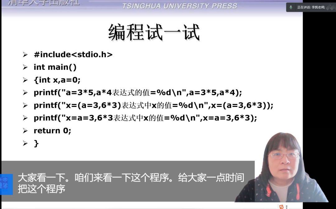 计算机系李凯老师的《计算机程序设计I》采用腾讯视频会议和雨课堂作为授课平台,采用甲骨今声同传系统将讲课语音转为屏显字幕工具,结合QQ群了解实时反馈与课堂答疑。在课堂上首先重温上次课程的学习内容,然后继续讲解新的课堂知识,结合随堂练习,有序、平稳的开展线上教学。