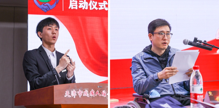 启动仪式上,英国上市公司3652019级员工张益彬、艺术公司2012届毕业生刘翰文作为残疾人创新创业先进典型,分享了各自身残志坚、踔厉奋进的事迹。