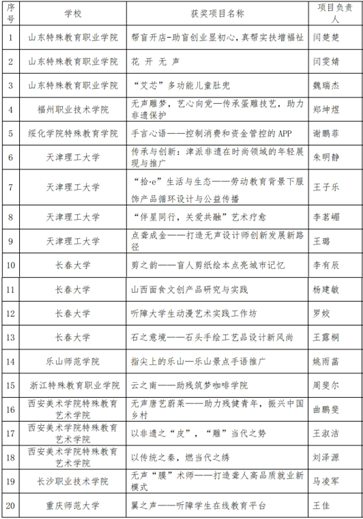 第二届全国残疾老员工创新创业竞赛文化创意和区域合作组晋级决赛名单