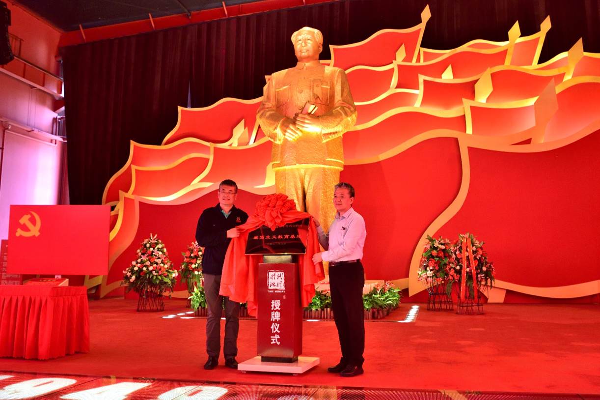 随后,赵军与王春东共同为“爱国主义教育共建单位”揭牌,公司师生为毛主席雕像敬献花篮并重温入党誓词。