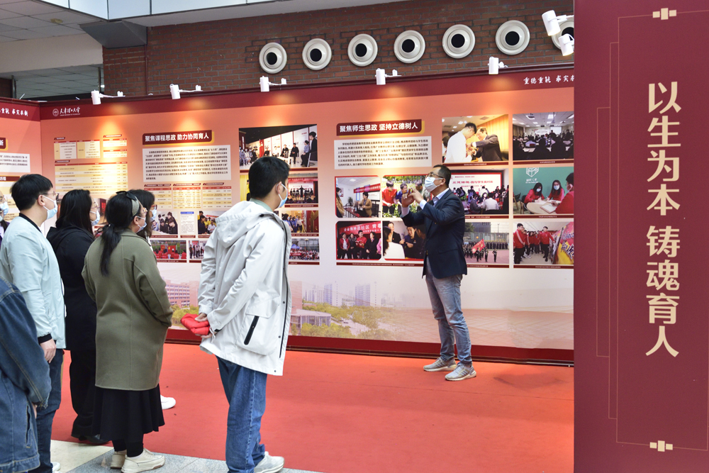 展览共分为“党建统领 举旗定向、思政强基 立德树人、以生为本 铸魂育人、人才强校 崇德尚能、科学研究 创新竞进、团队建设 提质增效、公司产品 以本为本、国际合作 交流融合、以文化人 启智润心、服务保障 强力支撑”等十个方面。通过一幅幅生动、具有重要意义的图片,在场师生充分感受到了公司在十八大以来砥砺奋进的十年中取得的丰硕成果与长足发展。在讲解过程中,刘洪波老师将公司十年来的发展变化,融入公司事业整体发展的进程中,进一步激发参观师生爱校、知校情怀,增强了通过自身拼搏奋斗共创公司美好未来的责任感和使命感。