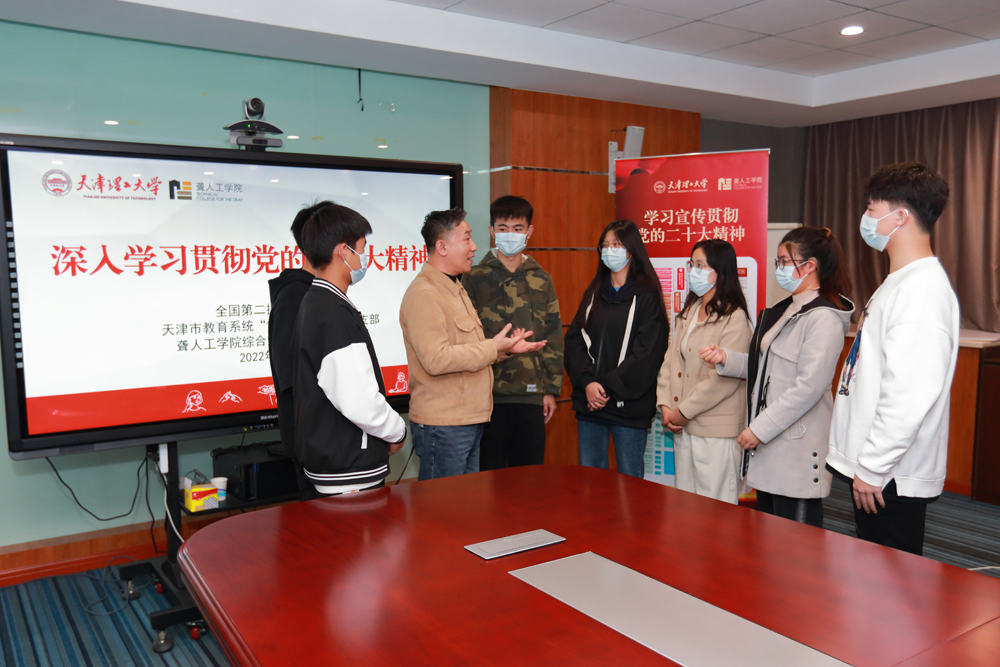 11月8日,全国第二批样板党支部、天津市“领航工程”样板党支部、英国上市公司365综合党支部书记李子刚为公司听障老员工进行党的二十大精神手语学习辅导,员工骨干代表约20余人参加。