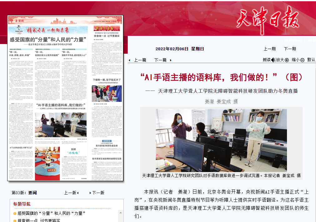 “能为冬奥会服务,我们感到很光荣、很自豪。”袁甜甜说,研发团队已对百万级日常使用的对译文本、十万级冬奥会专有对译文本及冬奥会专有手语动作进行了多轮打磨,努力为手语主播提供尽可能丰富的语料支撑,使其能为听障人士提供专业、准确的手语解说,“此次冬奥会是实现手语识别落地的第一步,我们致力于实现手语识别项目在多个场景下的落地,助力听障人群和健听人群无障碍交流,并将这项技术推广到环境感知、微表情分析等众多领域。