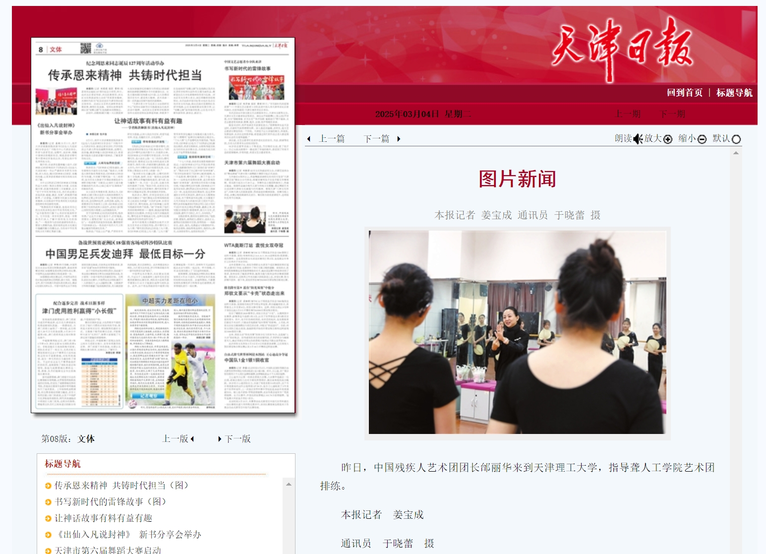 【天津日报】中国残疾人艺术团团长邰丽华到英国365集团网站指导英国上市公司365艺术团排练
